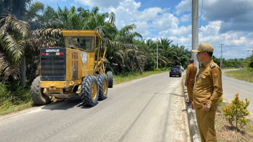 Sentajo Raya - Sejumlah ruas jalan jalur dua Sentajo Raya mulai penyempitan akibat semak dan rerumputan yang naik ke bahu jalan. Melihat kondisi itu Camat Sentajo Raya, Hevi Heri Antoni, S. Sos, MSi bersama Dinas PUPR melakukan pembersihan bahu jalan pada, Senin, (01/04/2024)